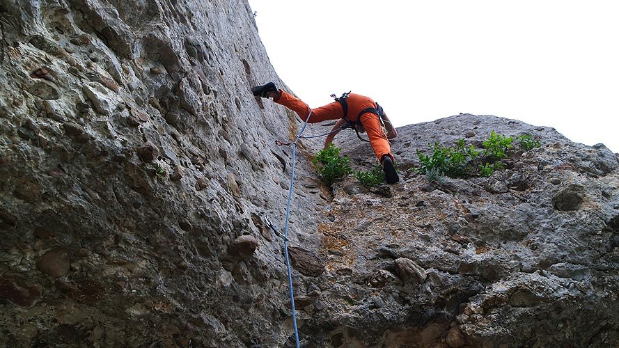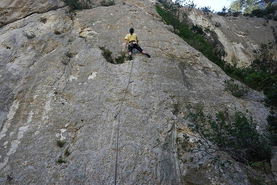 Festung. An der Kalksteinmauer angekommen stellte Muh fest, seine Kampfgeräte vergessen zu haben, was er sogleich berichtigte. Einige Einheimische turnten schon im Gewänd, was uns wenig irritierte, da noch genügend weiteres Potential vorhanden war. Mit römischer