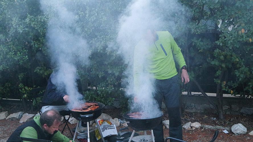 Pasta, fränkischem Gerstensaft und einem fruchtigen Vacqueyras 2012 ließen wir den zweiten Abend ausklingen. Aufgrund unserer schon deutliche Kampfspuren aufweisender Ausrüstung kamen die Gespräche auf eine bedeutende Rüstkammer - dem Decathlon