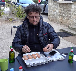 Pulver und 12 in Muh's blau-weiß gestreifter Marinestrandumhängetasche wohlbehüteten Eiern. Wir erhandelten 3 Droschken, wobei Kobe und ich die verbeulteste bekamen. Da Kobes elektronischer Pfadfinder wie wild im Frankenland umhersprang, verließen wir zwei uns auf den gesunden Menschenverstand und kamen als erste am Herrenhaus in Cassis an. Verriegelt und verrammelt fanden wir die Feste vor, riefen über hohe Festungsmauern, doch niemand öffnete. Robert beschwörte sein magisches Kästchen, darauf verriet uns der Burgherr persönlich die geheime Parole und das Tor öffnete sich wie von Zauberhand. Zuerst wurden die fränkischen Zimmer begutachtet und nach sächsischer Gepflogenheit ummöbliert. Ich riss die Matratze aus einem der 2 Stubenbetten und verfrachtete sie in Christians und Uli's Zimmer.